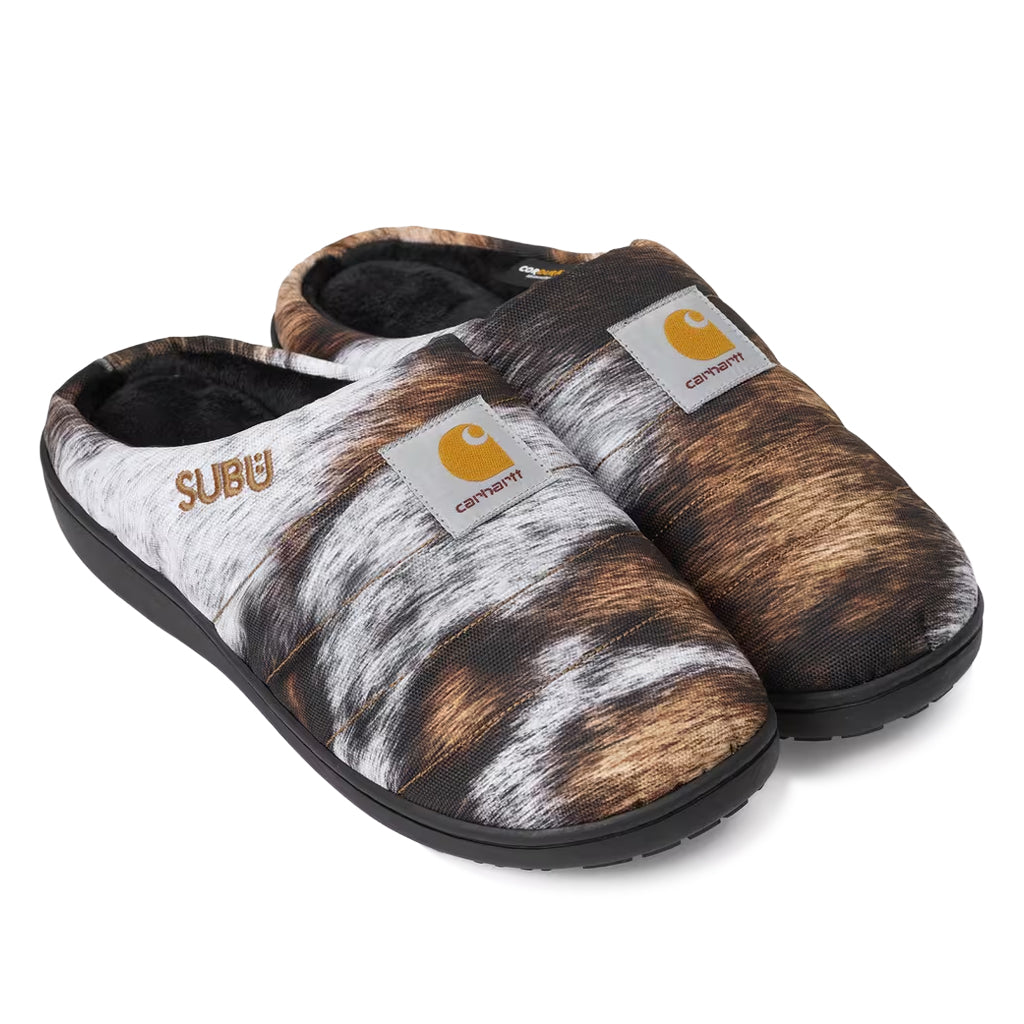 Les chaussons 'Cordura®' sont conçus en collaboration avec la marque de chaussures japonaise Subu. En polyester recyclé Cordura®, ils sont rembourrés avec un coussin à quatre couches et affichent le Square Label. Ce modèle est livré dans son sac correspondant.