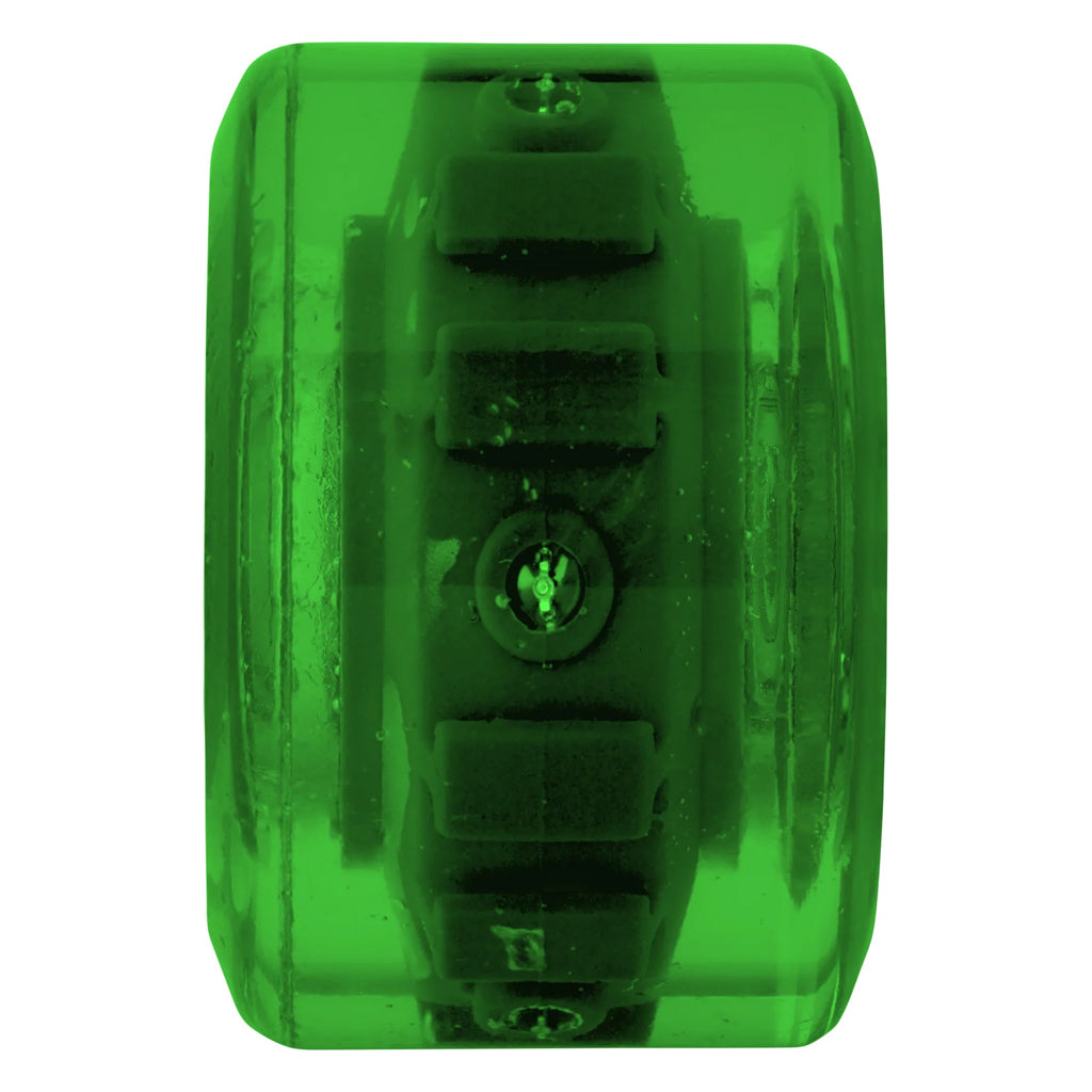 Slime Balls 60mm, 78a Screaming Slime Light Ups with transparent green urethane, yellow LED bulbs, and black core.