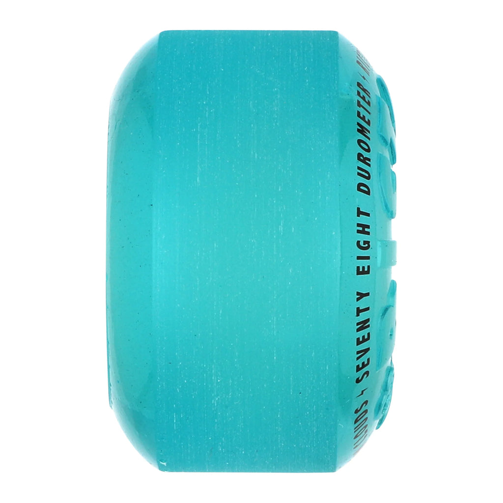 Ricta Wheel Dynamics 55mm Clouds in transparent blue with glow in the dark green core, debossed and pad printed lettering.
