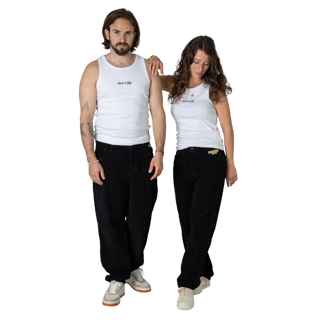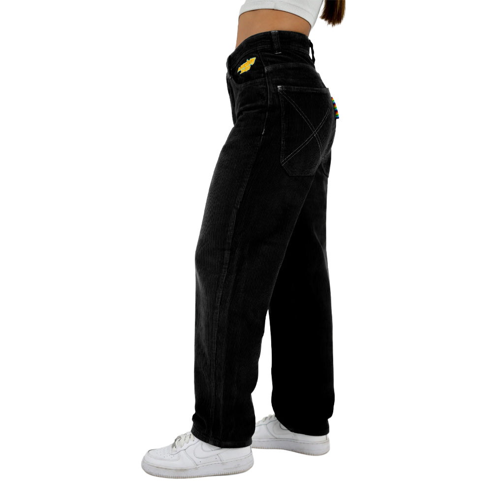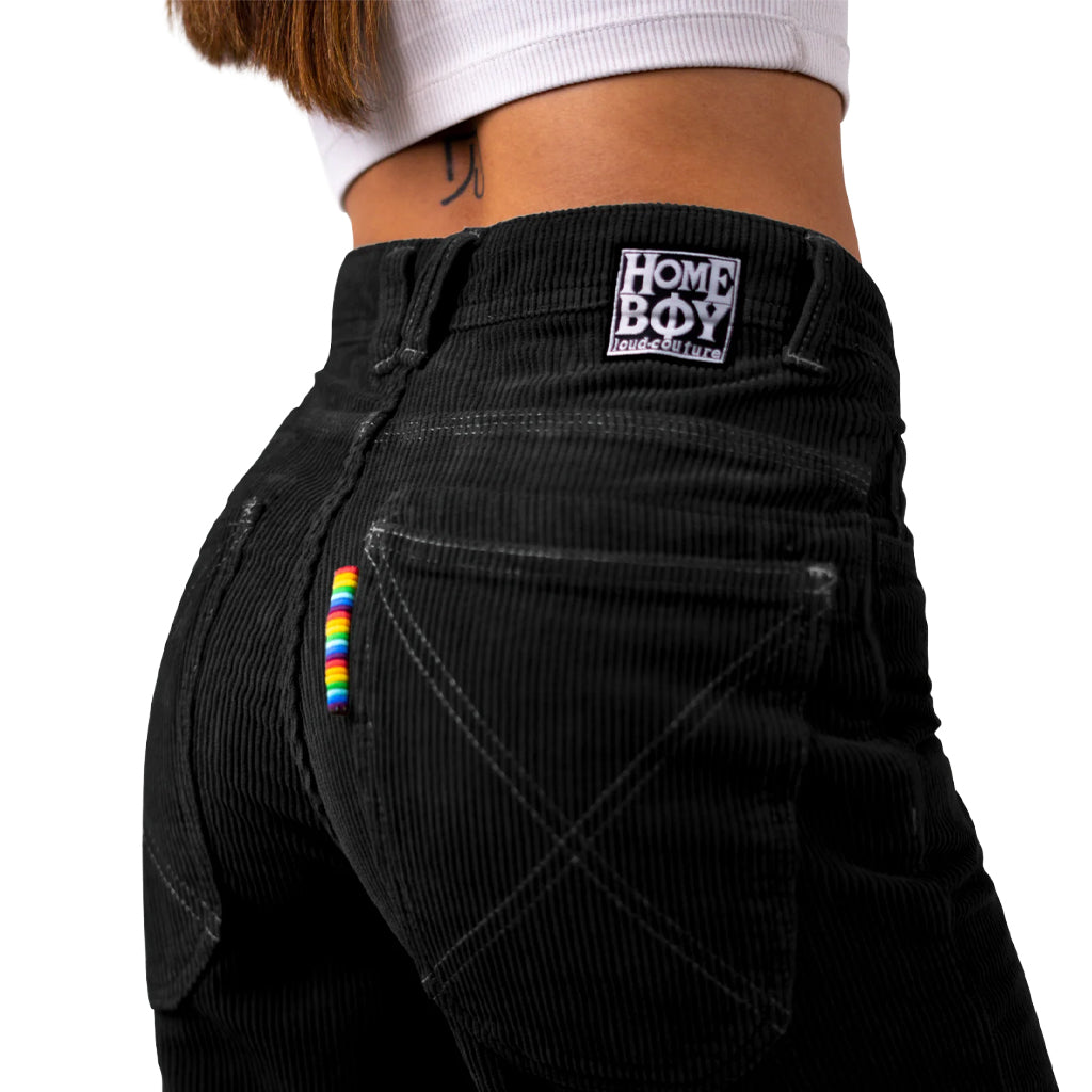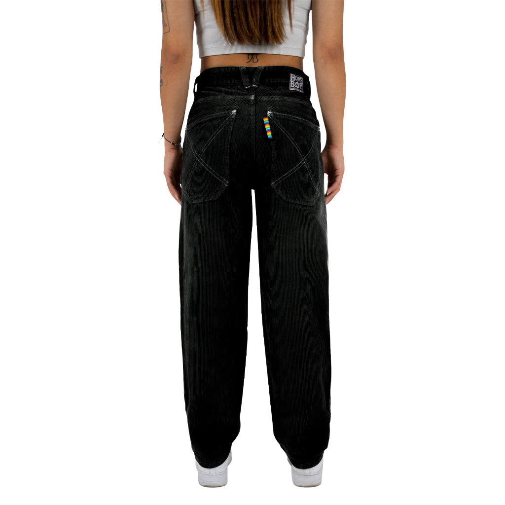 Les X-Tra Cord Baggy ont un look vintage classique car ils adoptent les détails clés des années 90. Il s'agit notamment de la broderie multicolore « homeboy x-tra » sous la ceinture, de la braguette arc-en-ciel et de la broderie X sur la poche arrière. La poche arrière est également coupée un peu plus profondément, comme à l'époque, ce qui confère au pantalon un aspect ample supplémentaire.